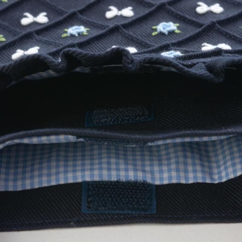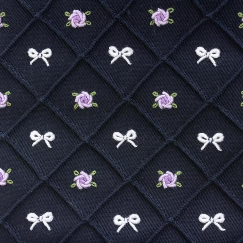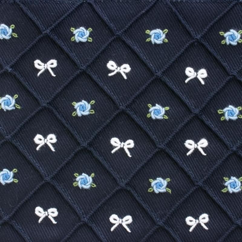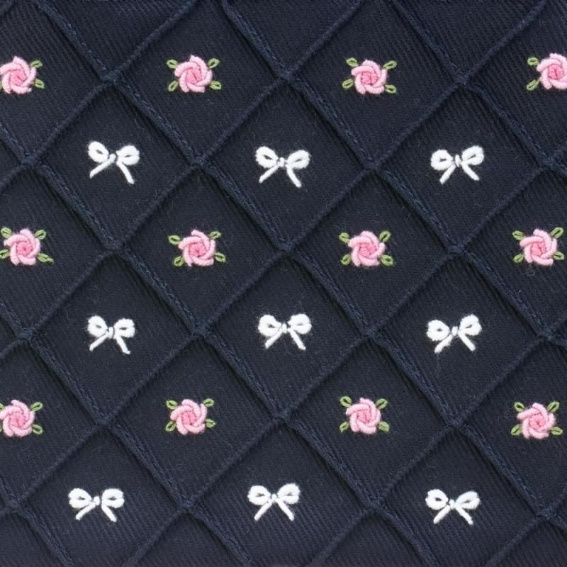 3センチ四方のピンタックの中に巻きバラとリボンの刺繍が交互に入っています。