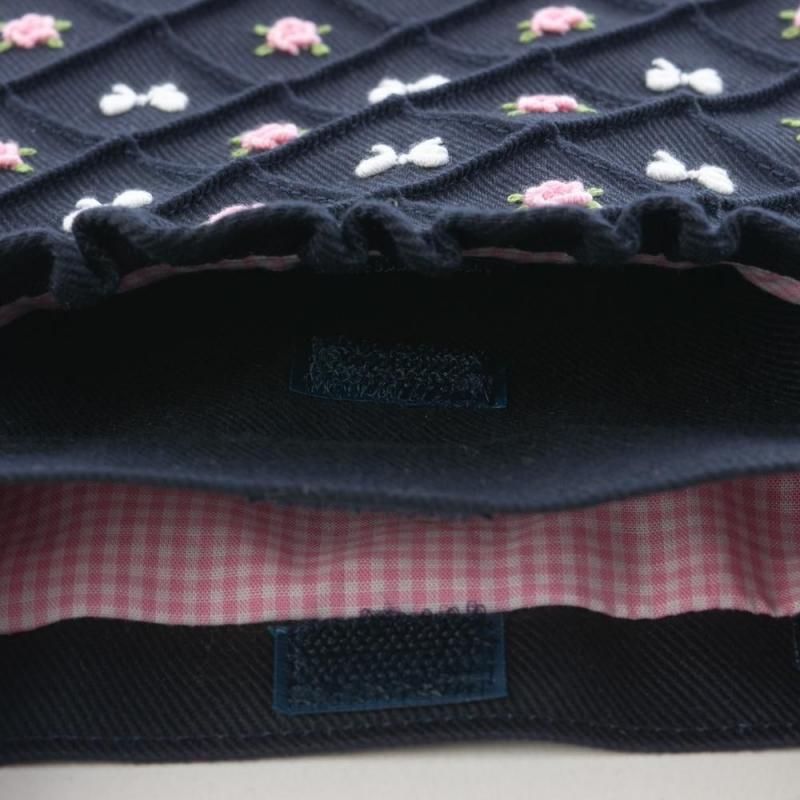 ポケットの縁にフリルをあしらい可愛らし印象に。