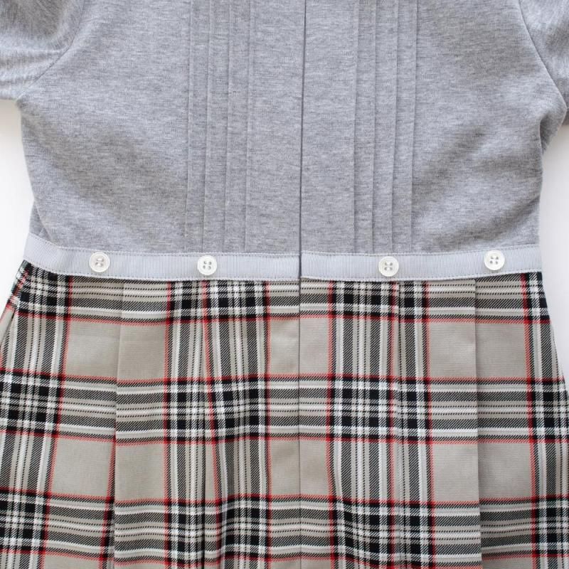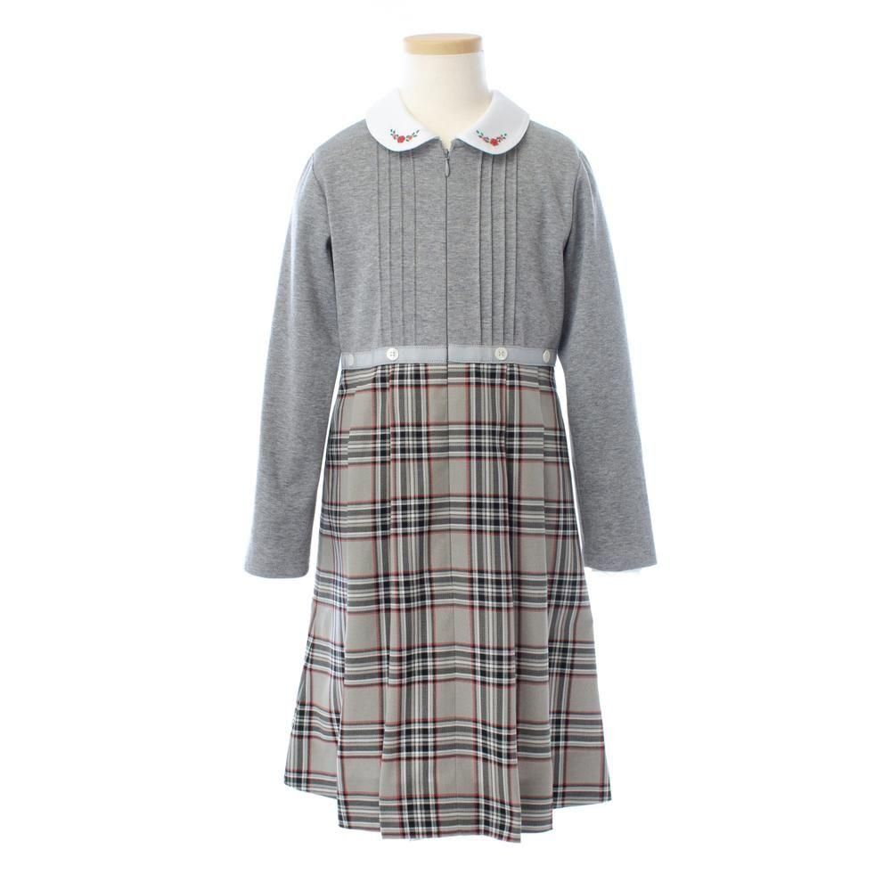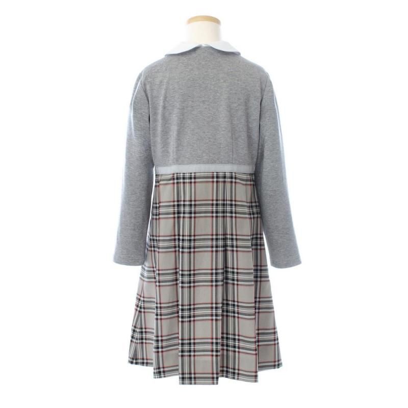 長袖前開きワンピース(グレー×ベージュ)