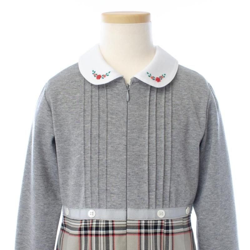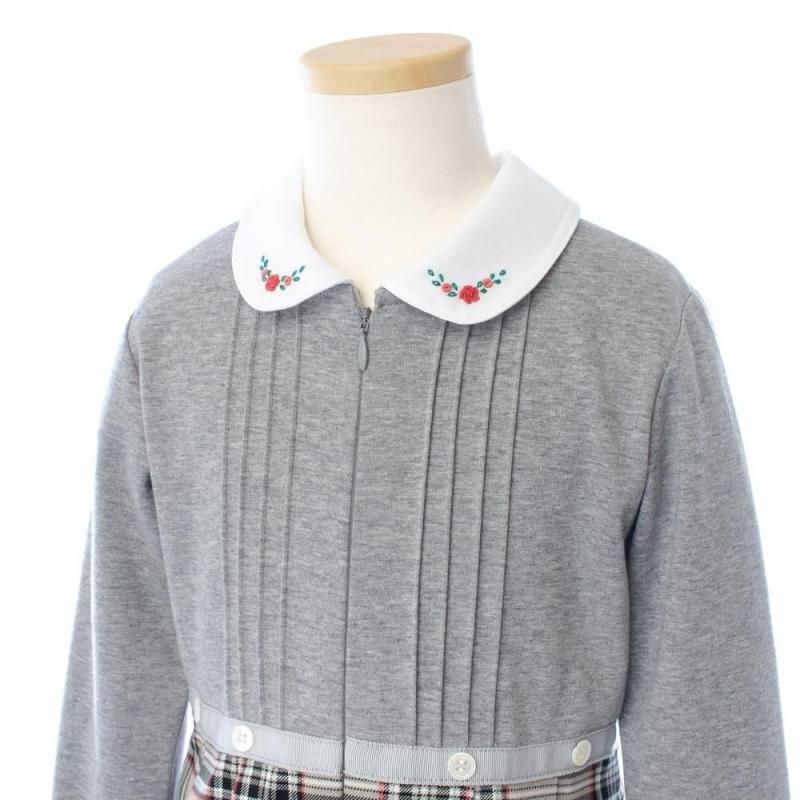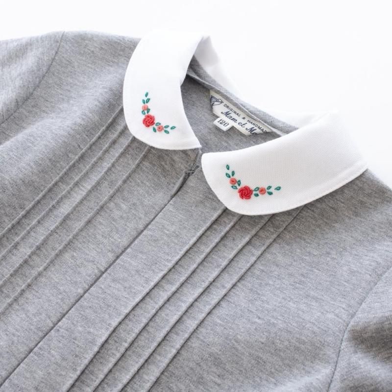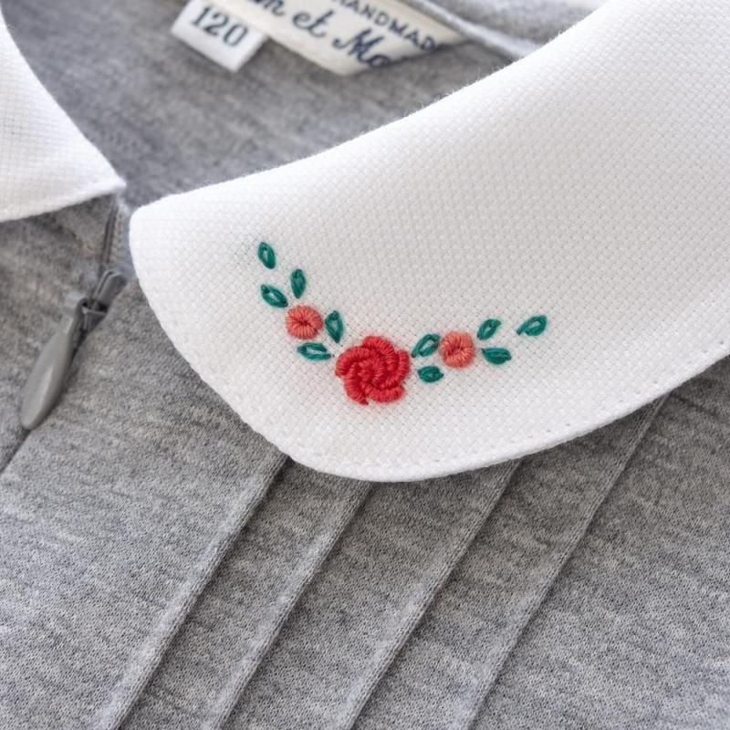 白い丸襟にバラの手刺繍を施し、お顔周りに華やかさをプラスしてくれます。