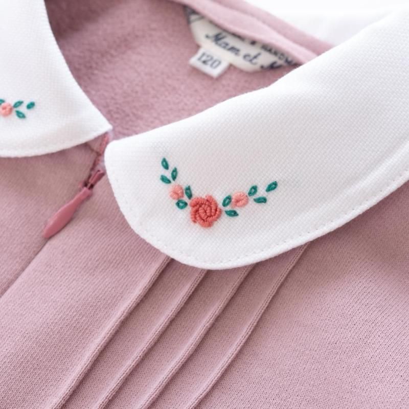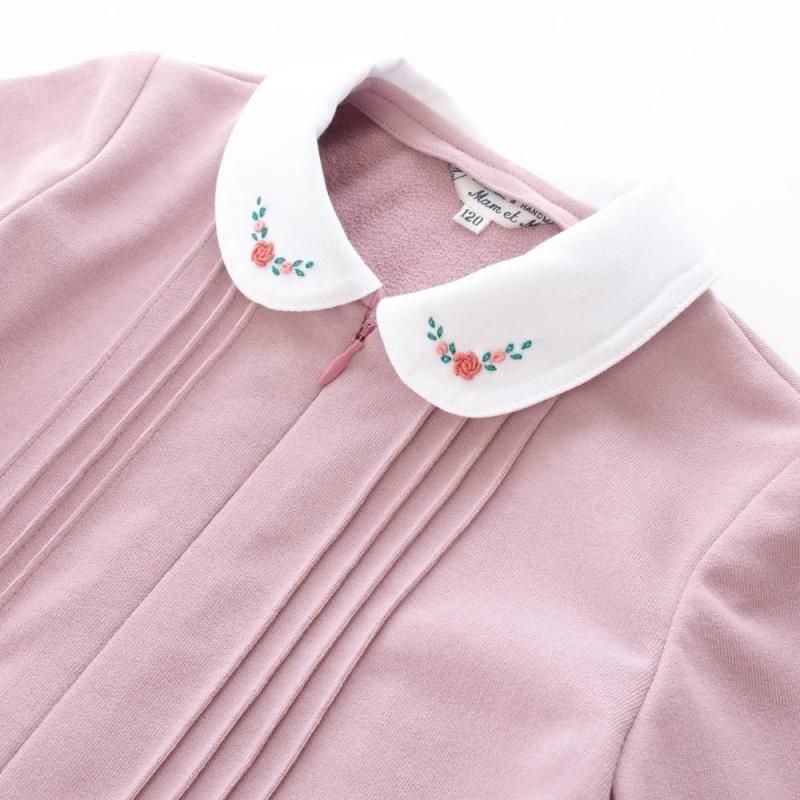 白い丸襟にバラの手刺繍を施し、お顔周りに華やかさをプラスしてくれます。