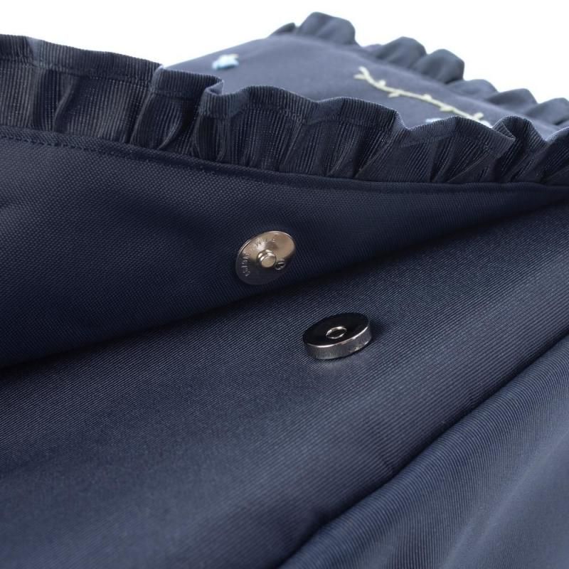 夜空のようなネイビー地に、控えめなフリルが上品なアクセント。