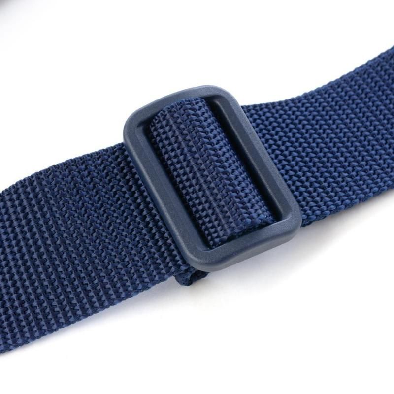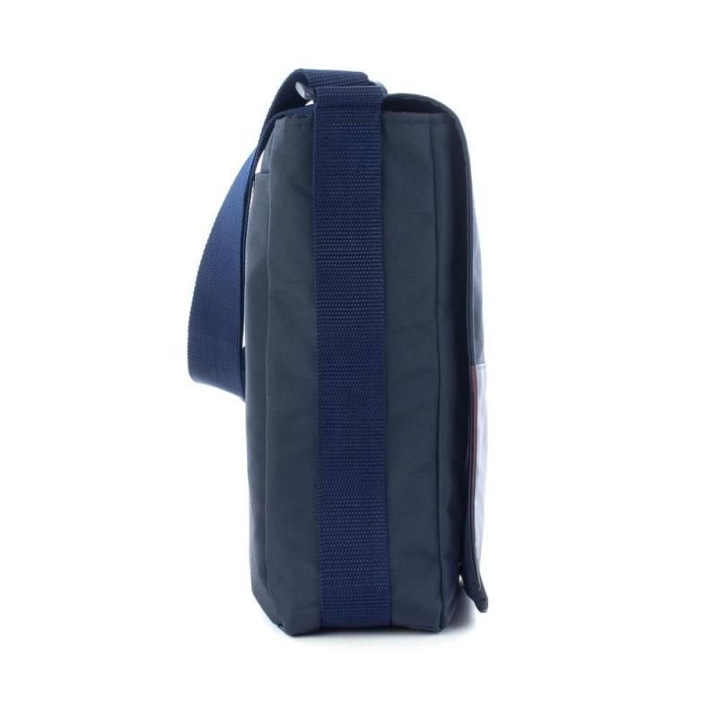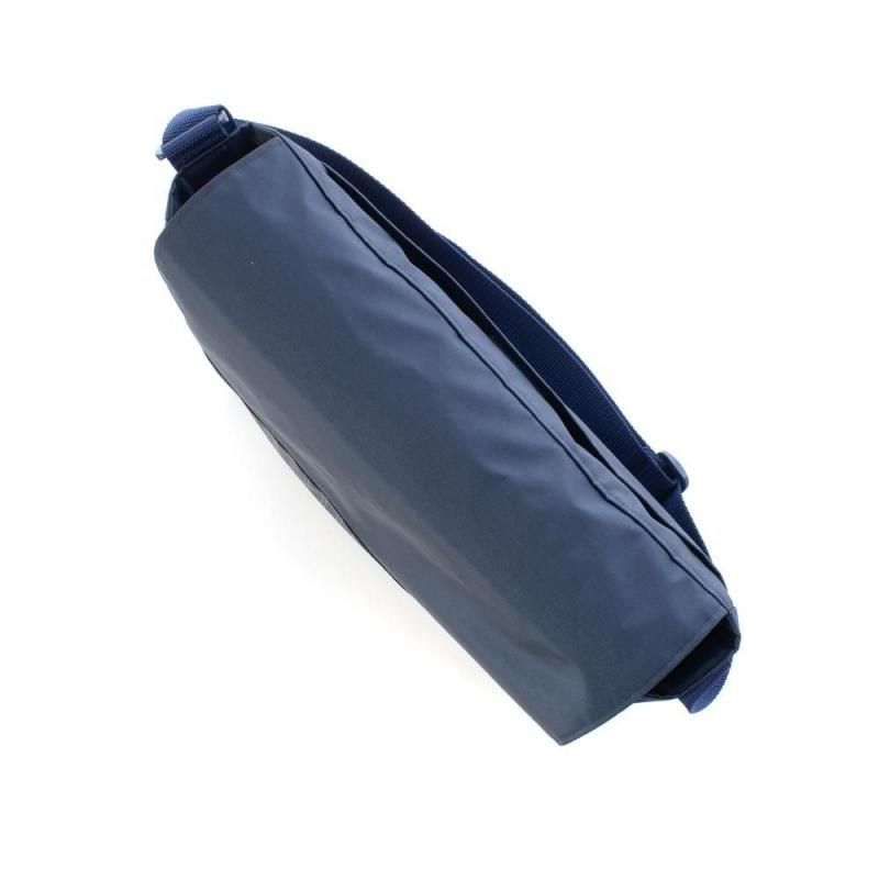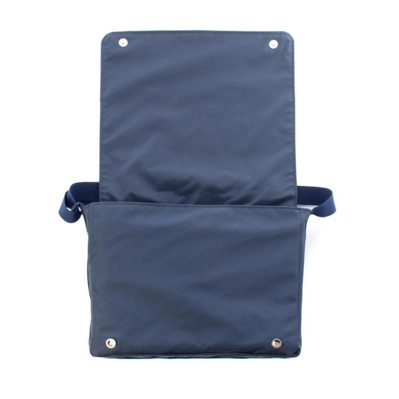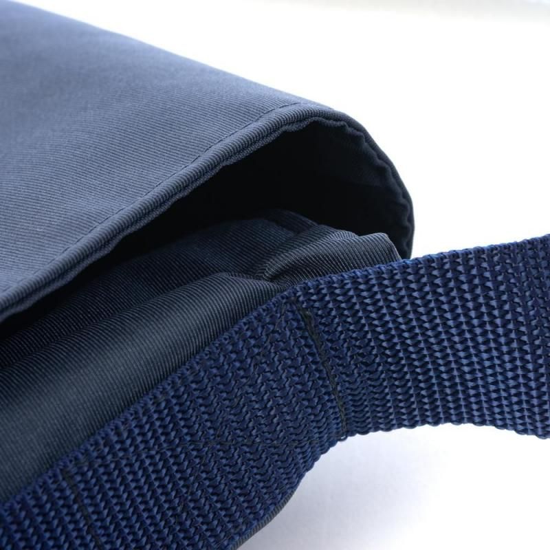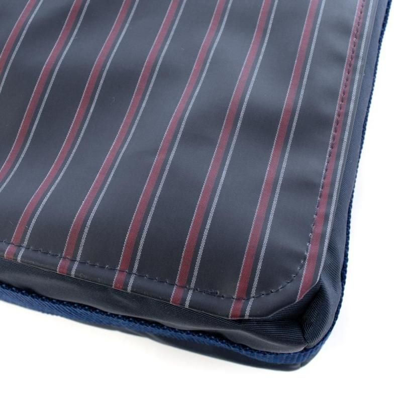 ネイビー地にストライプ柄を組み合わせたショルダーバッグ。
