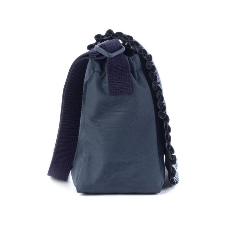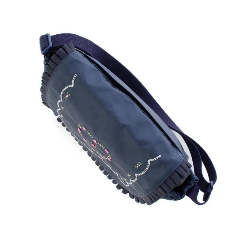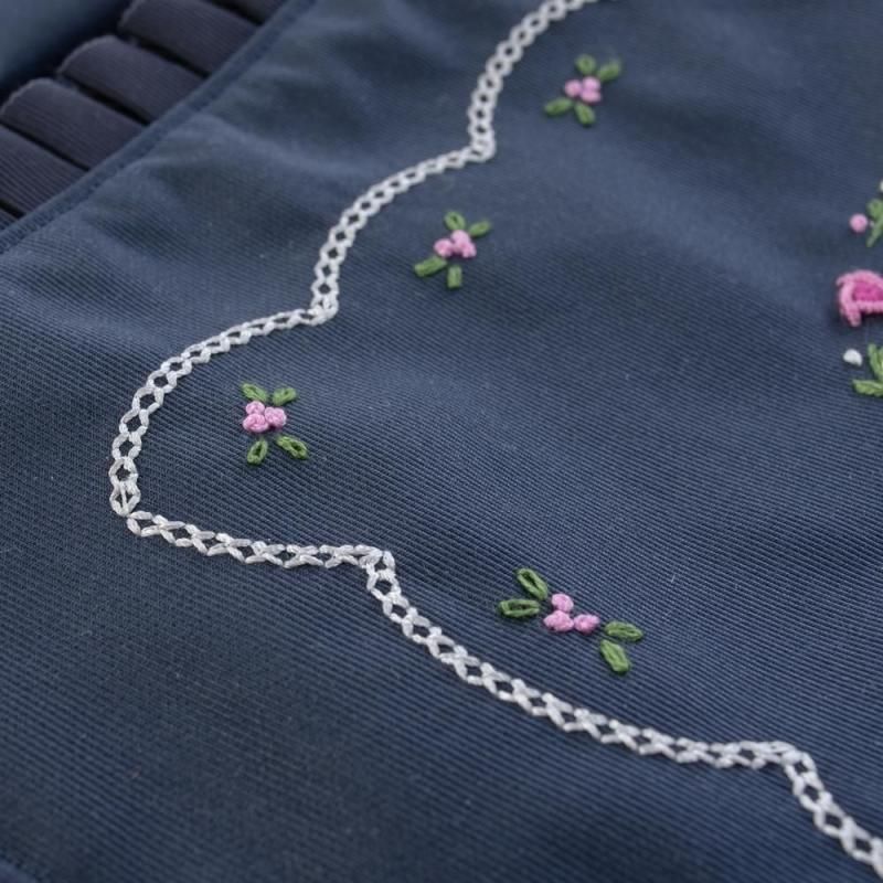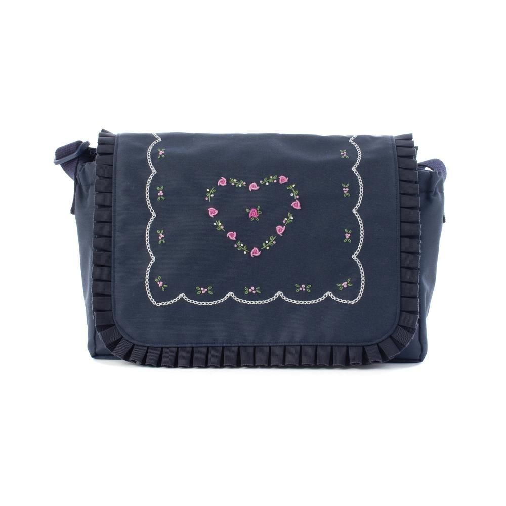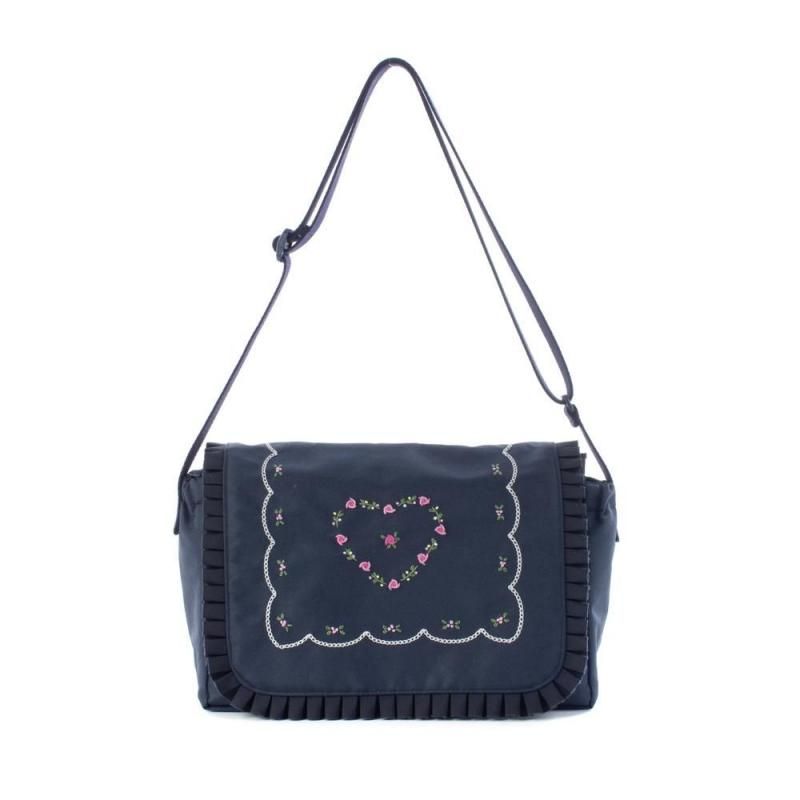 通園におすすめの共布フリルと刺繍入りのお弁当ショルダーです。