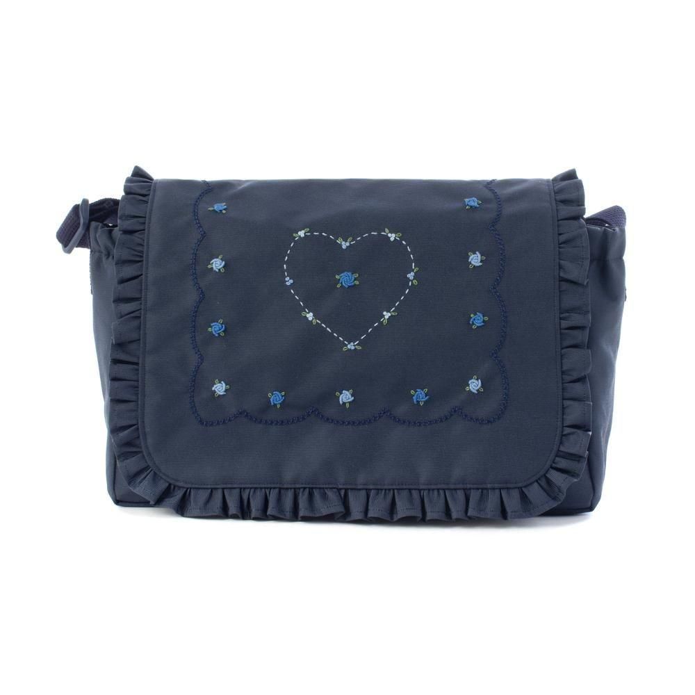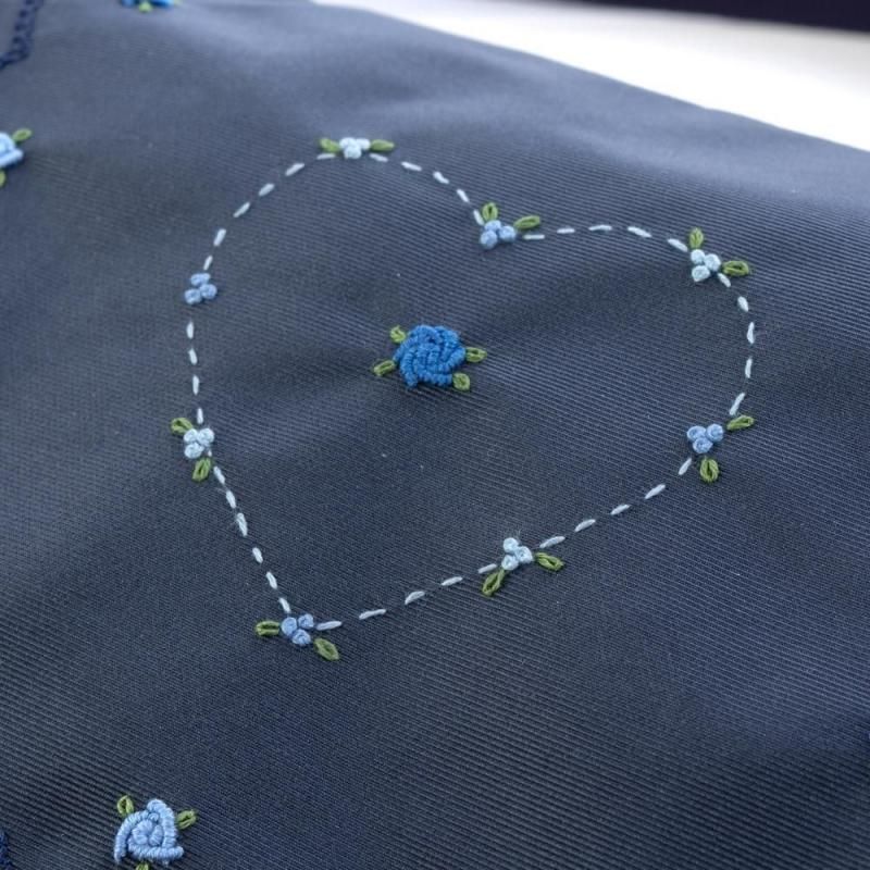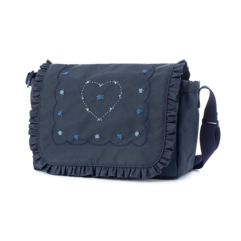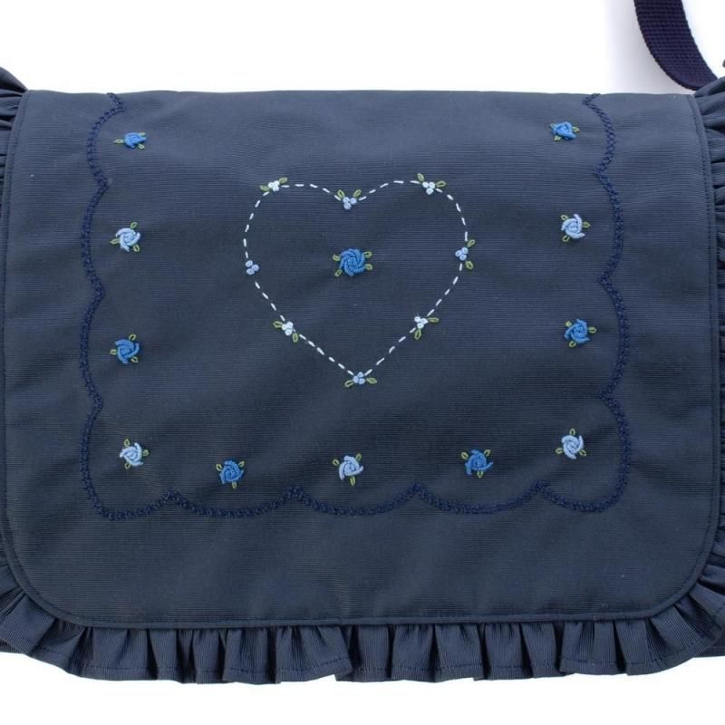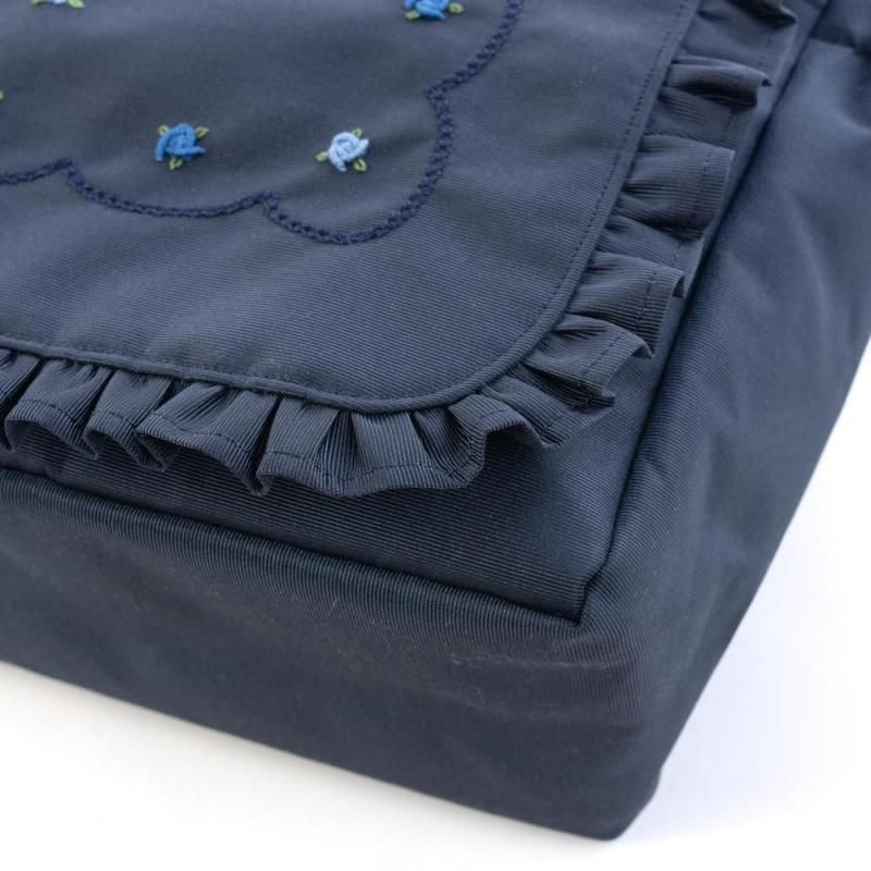 お弁当ショルダー(A-48 紺スカラップ刺繍 ブルーバラ)