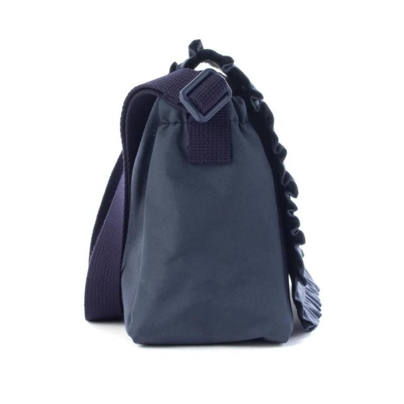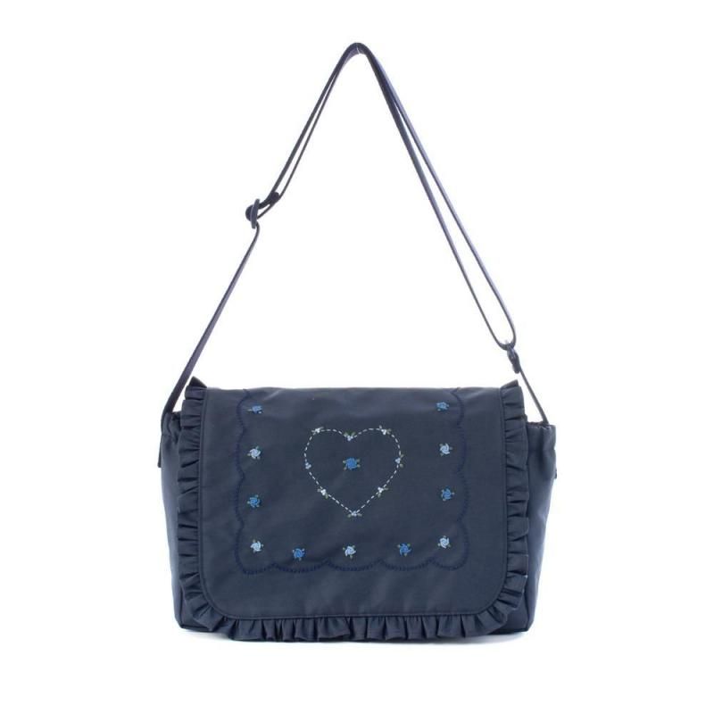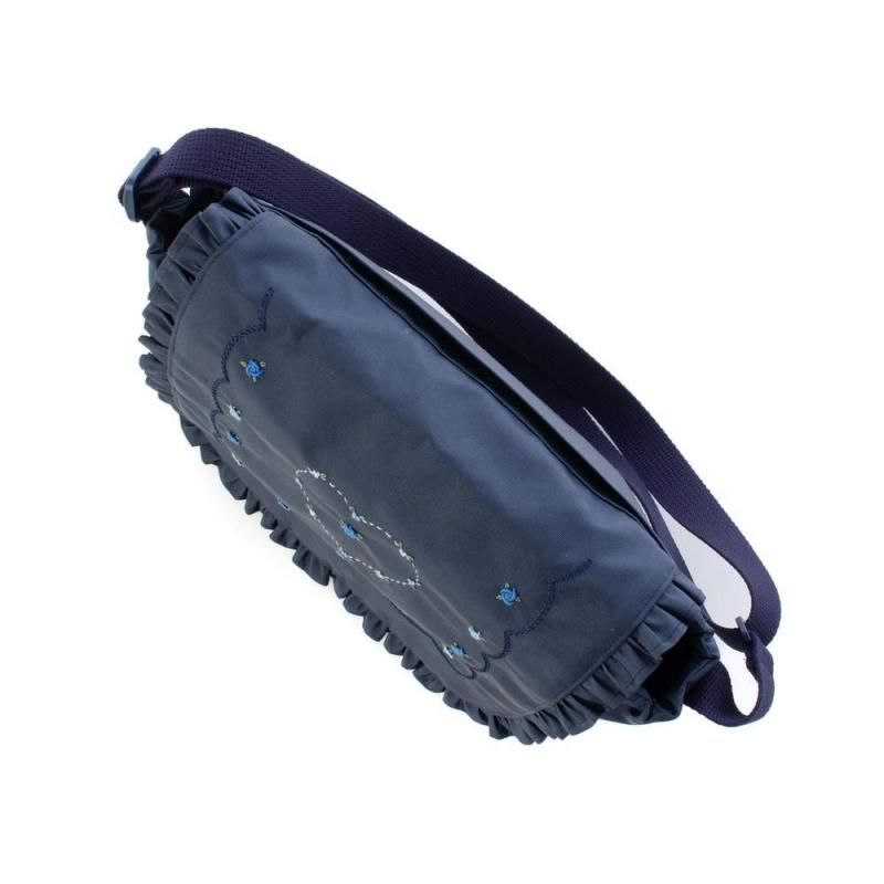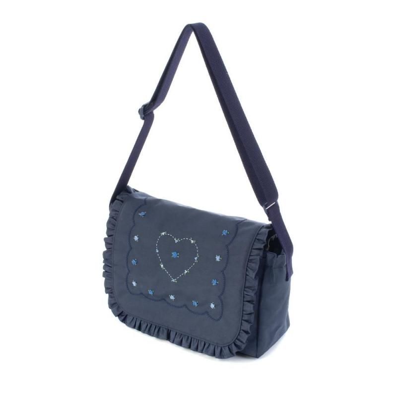 通園におすすめの共布フリルと刺繍入りのお弁当ショルダーです。